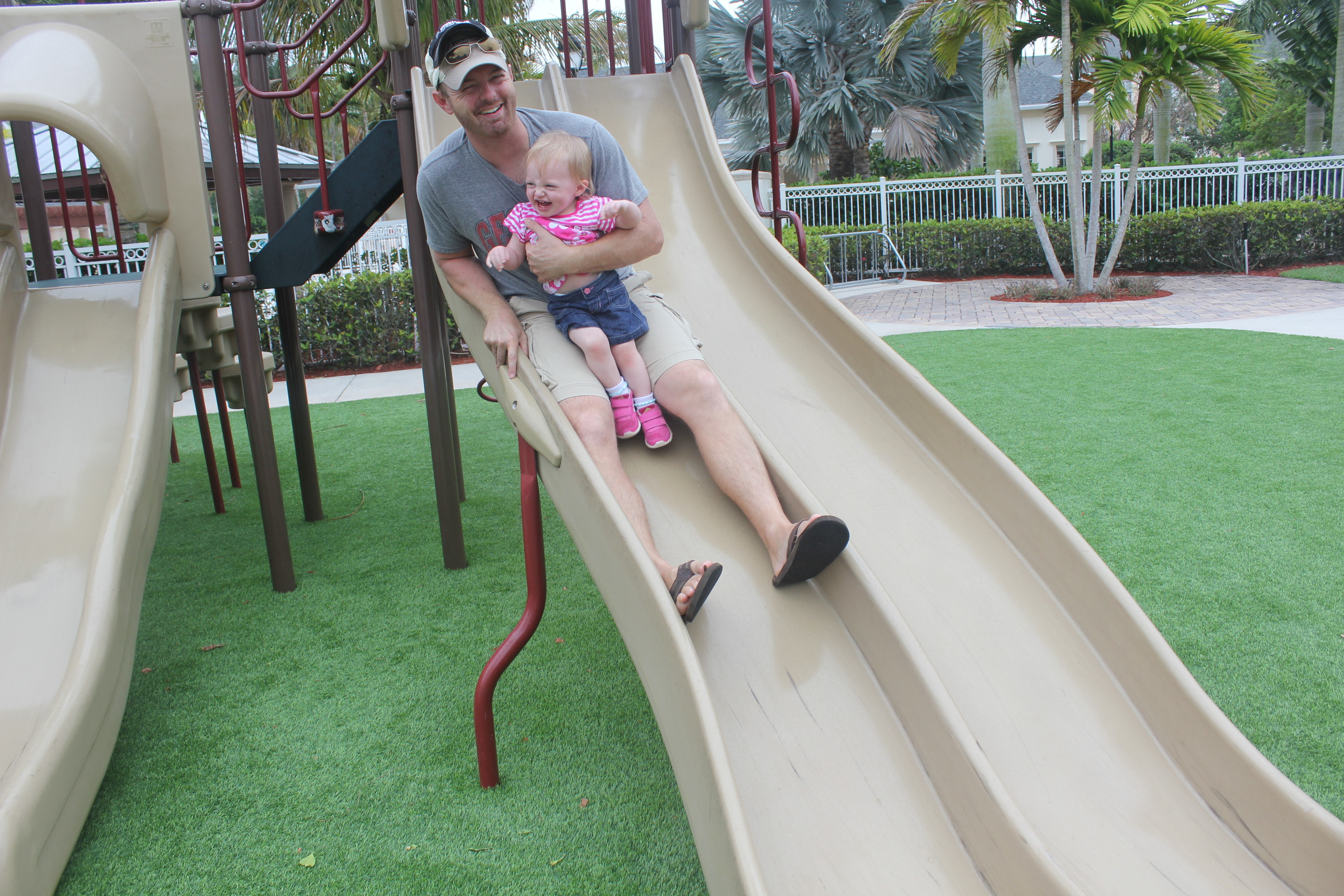 This morning started with a trip to the play ground for Ms. Mackenzie to play. Huck was being the cool uncle and taking her down the slide. He got his butt stuck a few time, though 🙂