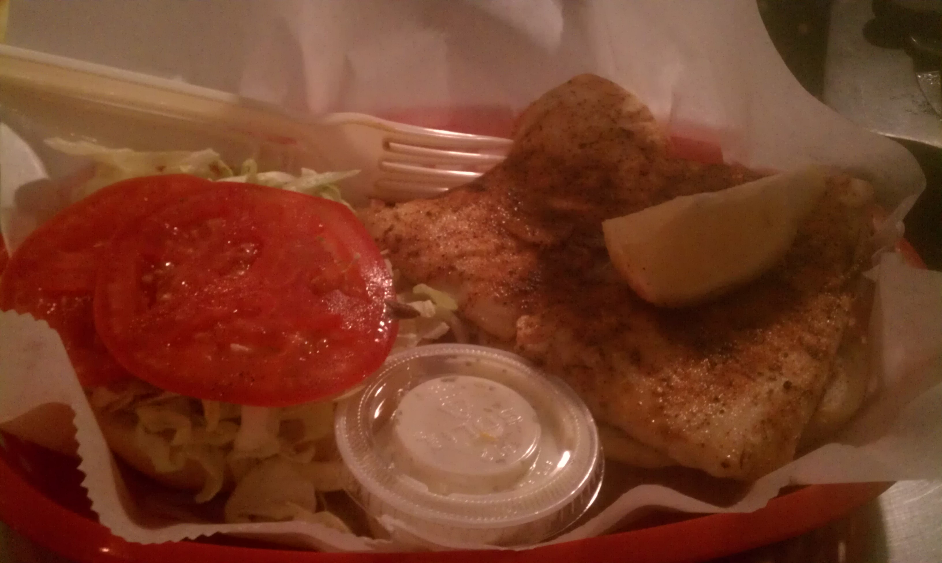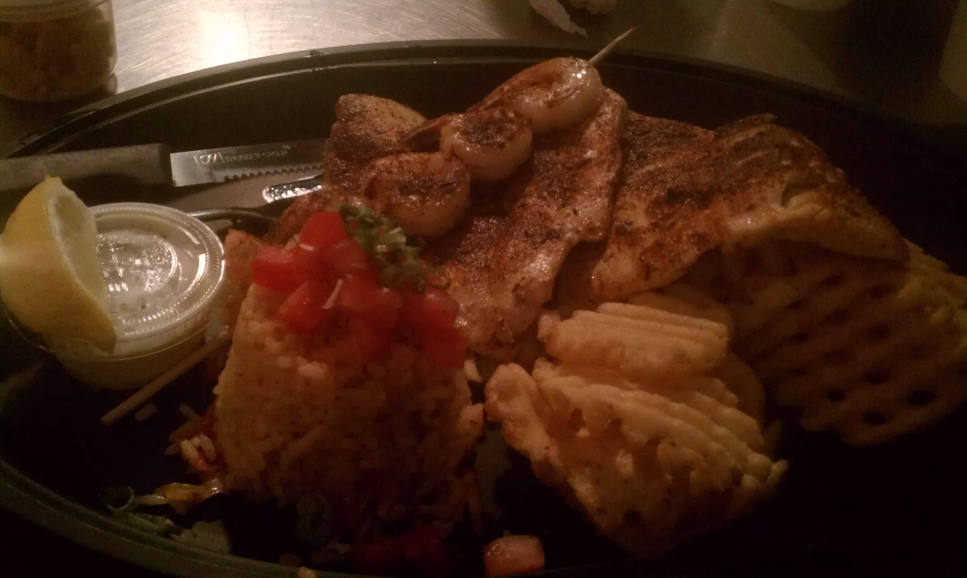 For dinner, we went to Dune Dogs. I ordered the Blacken Fish Sandwich and Huck ordered the Mix Grill with rice and fries.