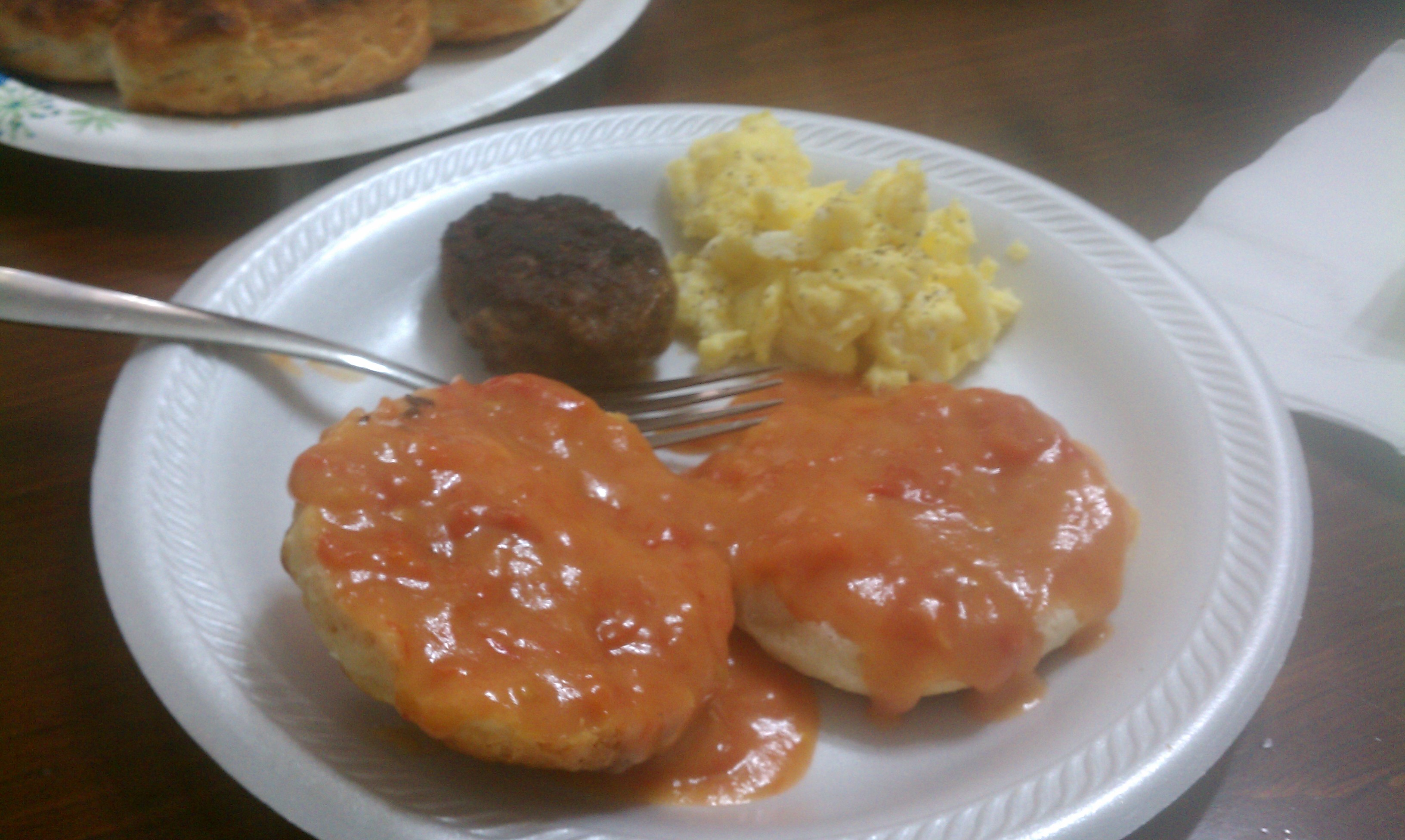 After I got off work Thursday, we packed up the dogs and left for the 7 hour ride to my Grandparents house near Panama. That ride is horrible!! We arrived around 9 and spent a little time with them before calling it a night. I do not get to see my Mom’s Mom very often, so this trip was a nice (I wish it could have been under better circumstances). The next morning, my Nanny made us Tomato Gravy, Biscuits, Sausage, and Eggs for breakfast (My Favorite), before we left for the funeral.