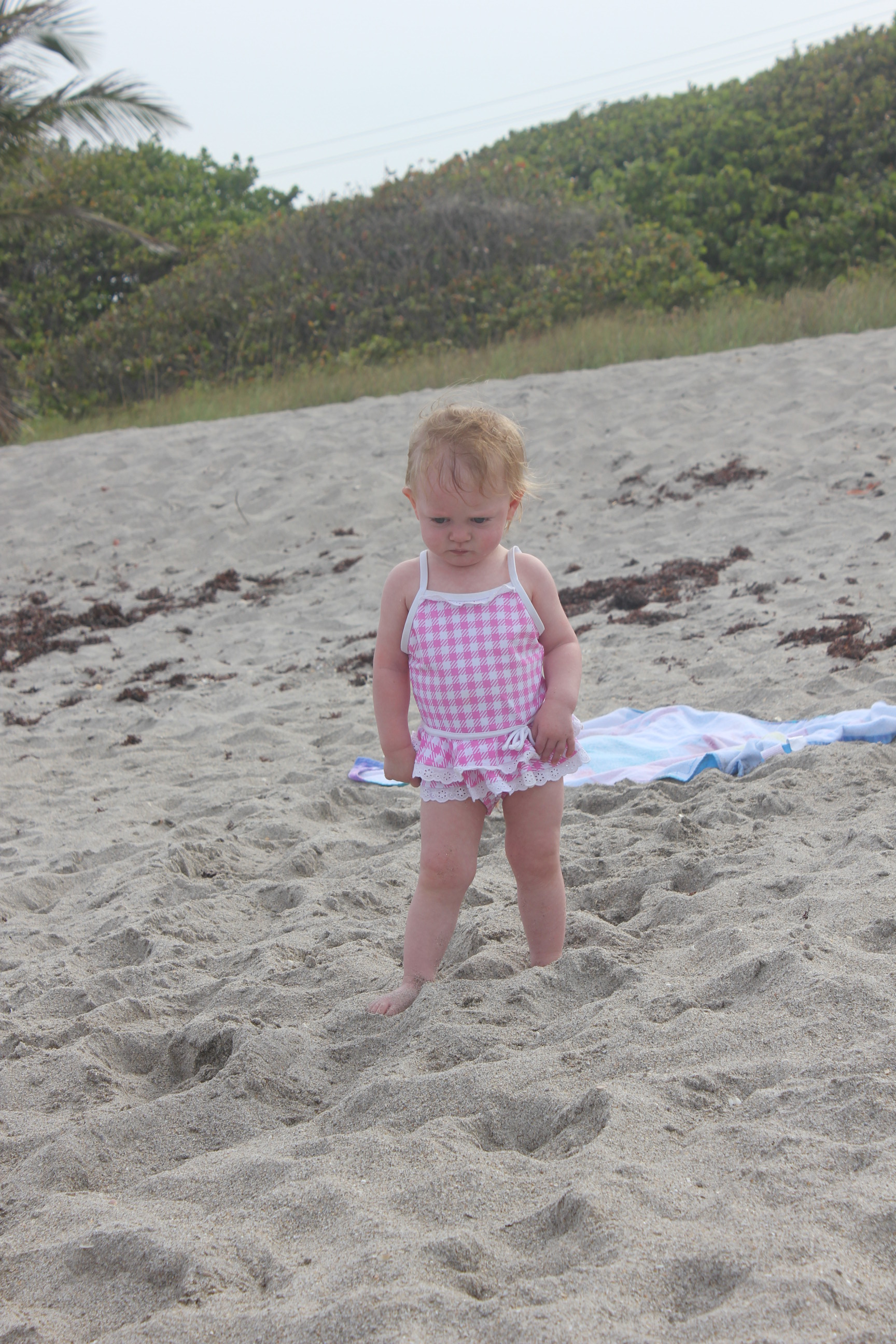 She just woke up and was trying to figure out how to walk on the sand.