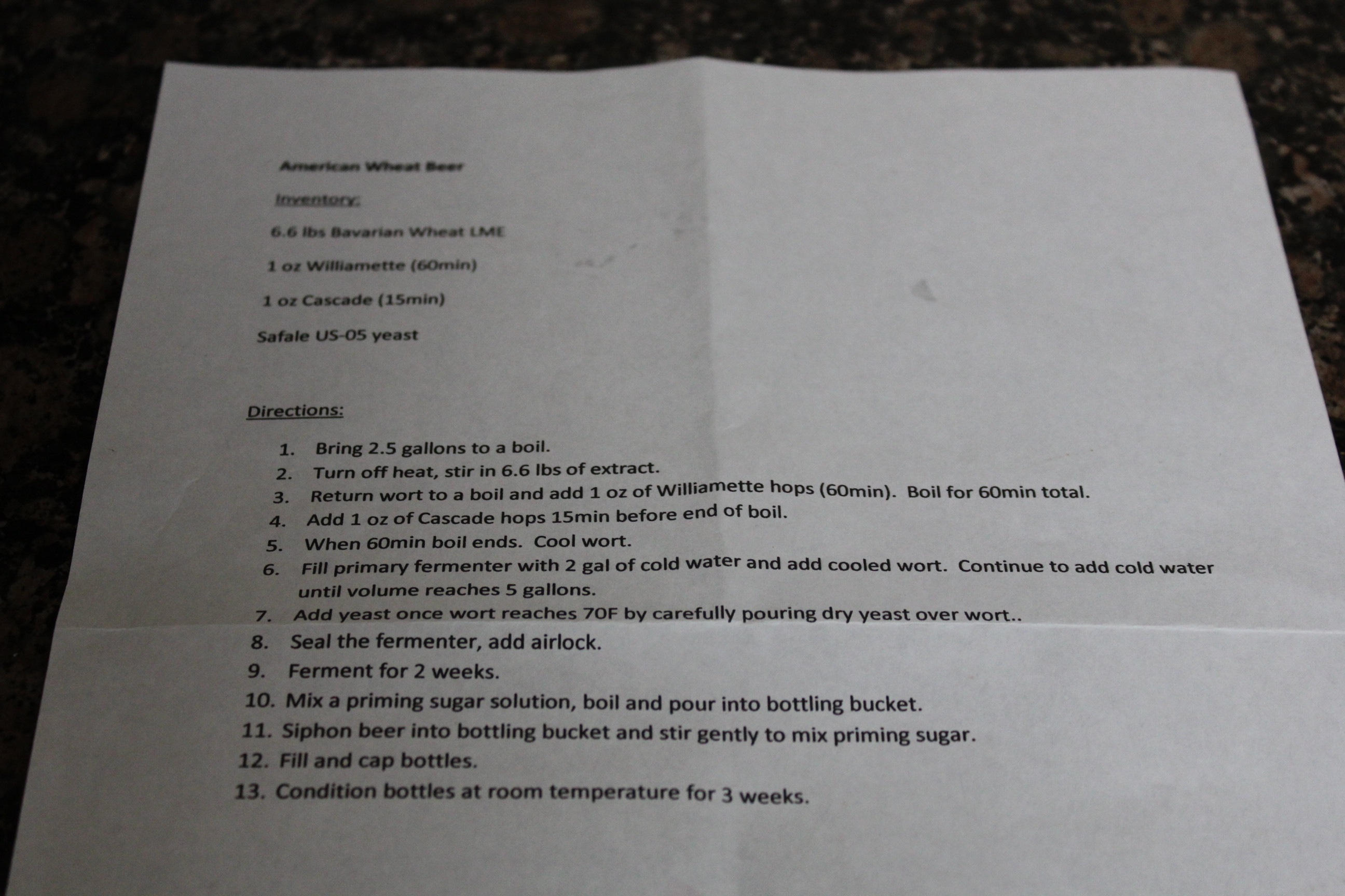 We went to the local Brewing Supply Store to get everything I needed for my beer. The lady there proved me with a basic/simple Wheat Beer recipe.