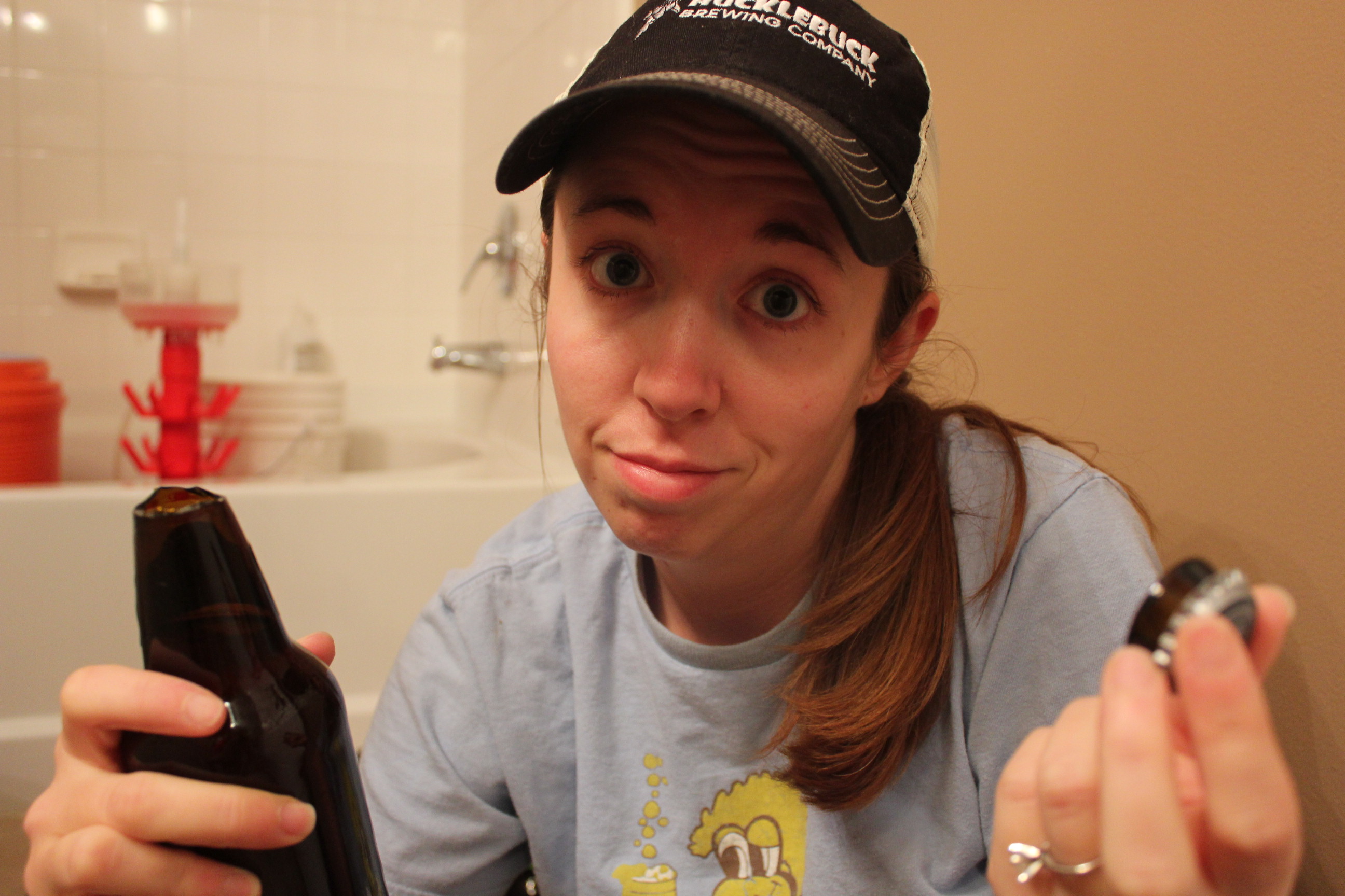 After transferring to the bottling bucket, it was time to start bottling. I sanitized the caps and filled the clean bottles with the beer.