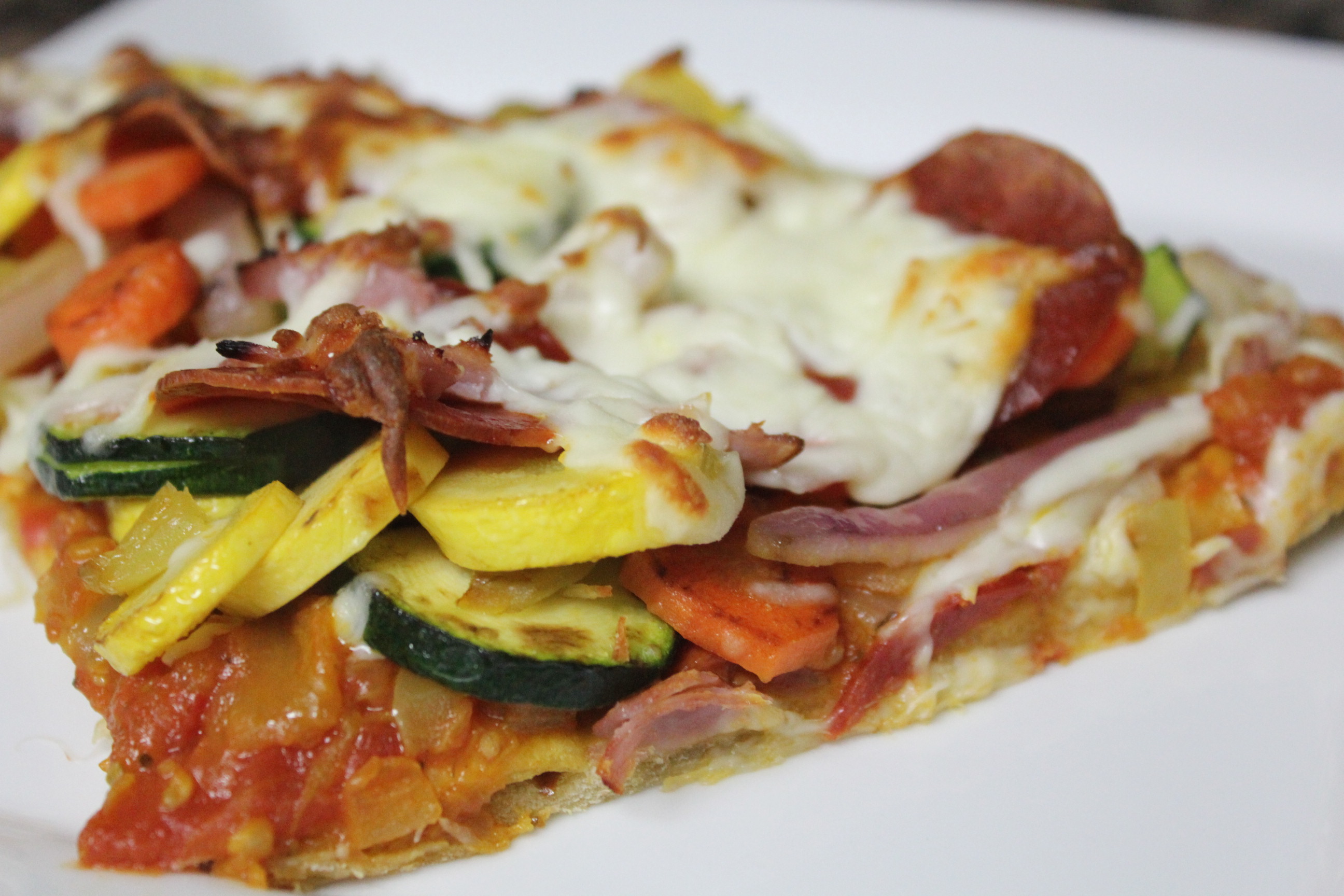 I added Zucchini, Carrots, and Yellow Squash to my pizza, and we used Low Fat Cheese. It does not melt the same as full fat cheese but still has all the same flavor.