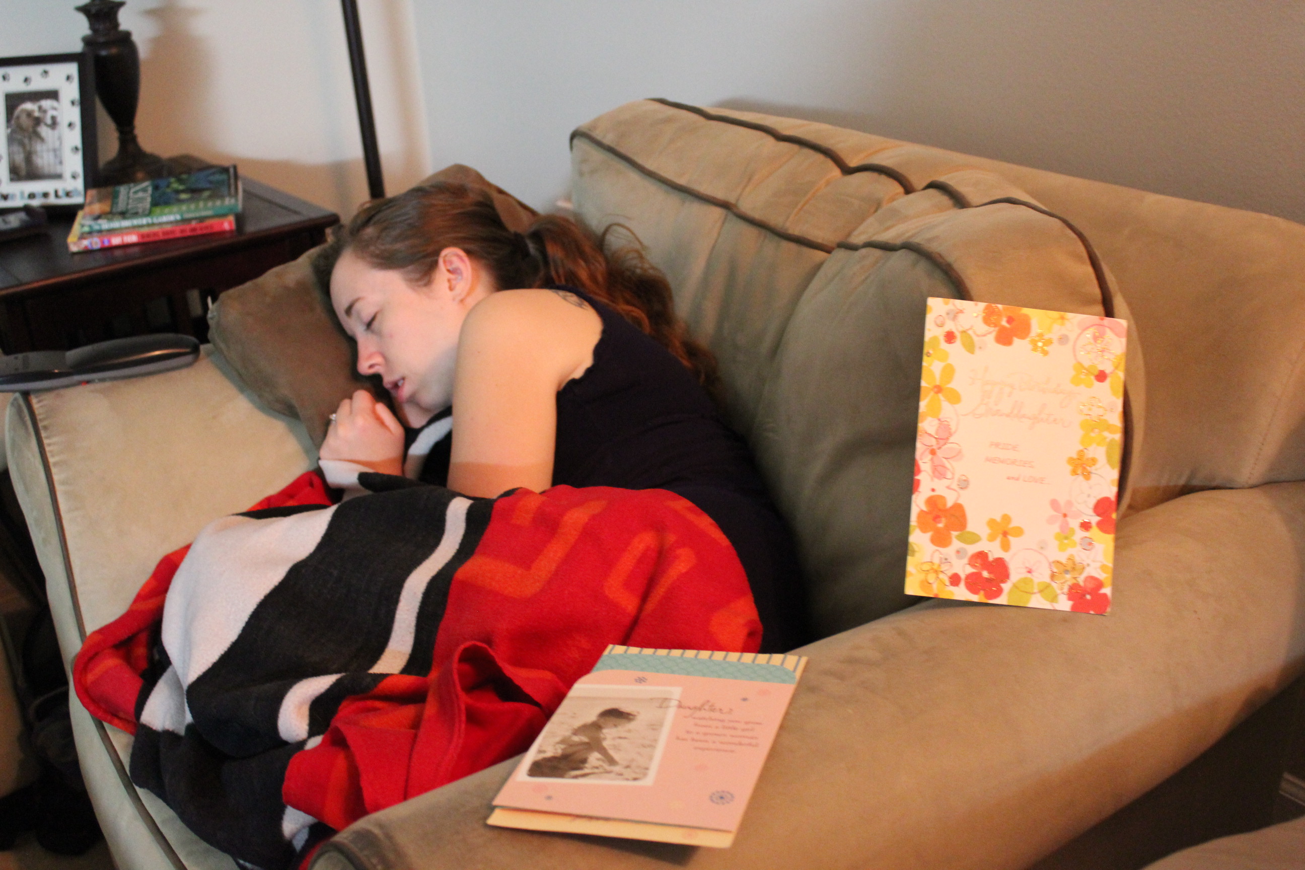 Saturday, I woke up feeling fantastic. I woke up at 6AM, curled up in the chair. Normally if I fall asleep in the chair, I wake up with a sore neck or back. I got up. Fixed a large glass of water and noticed that Huck took pictures of me while I was asleep.