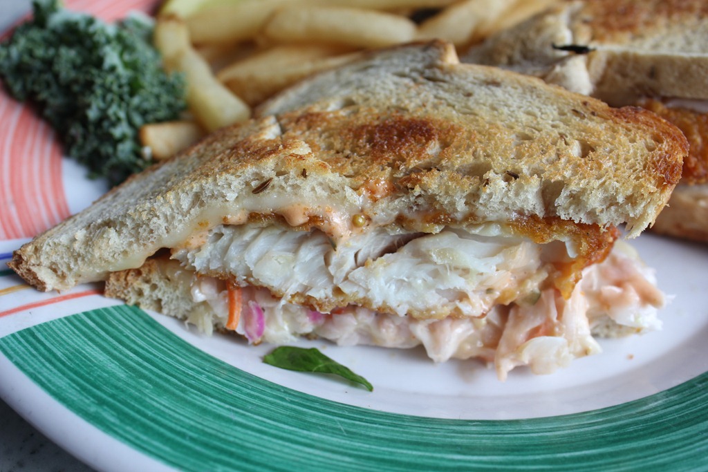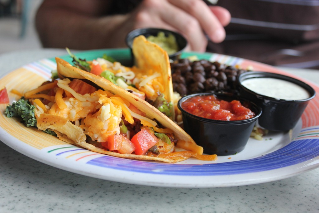 For lunch, I ordered the Crunchy Fish Ruben with slaw instead of sauerkraut (Just a FYI Sauerkraut is the only food I despise and refuse to eat!!) Huck ordered the Fish Tacos with Rice and Beans.