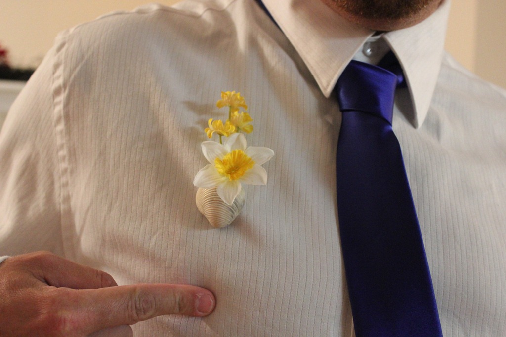 I love the boutonnieres the fake flowers will be great. Plus cheaper! The girls flowers look better with the shells too! OH Yea! THANKS for rubbing in my face I’m the only one waiting to see you in my 80’s wedding dress. No matter what you do to it, you will be Beautiful, but I can’t wait to see ya with it on. I LOVE YOU, and Miss ya both very much. Mom