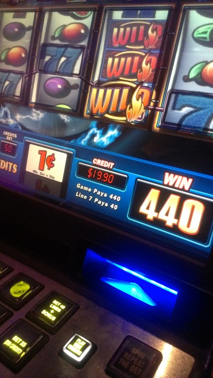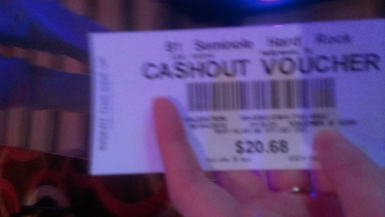 The people around us probably thought we were crazy, too. When we got over $20, we both started yelling “Cash out”! Cash out!” We acted like we won $1000!