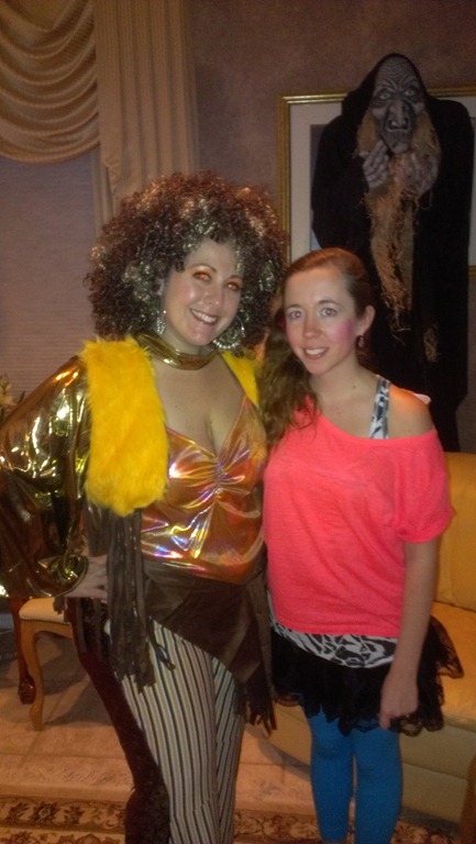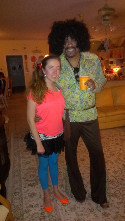 I threw together some random neon colored clothes (What? You don’t have neon blue leggings in your closet, too!?!) The 80’s look is always an easy/cheap costume. Huck wore a German costume he had from a few years ago. I guess from this pic, he was going for a stoned German look.