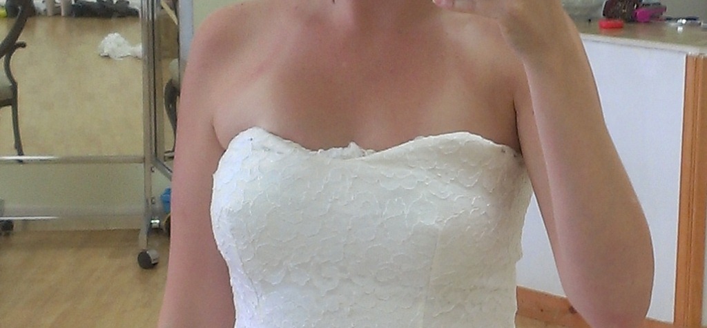 I could not believe how great the upper part looked once she made the straps. The only complaint I had was, she took in the top too much and then we couldn’t take it out anymore because of the lace. I was left with a top that was a little too tight and it puffed out at my hips (which are already big)