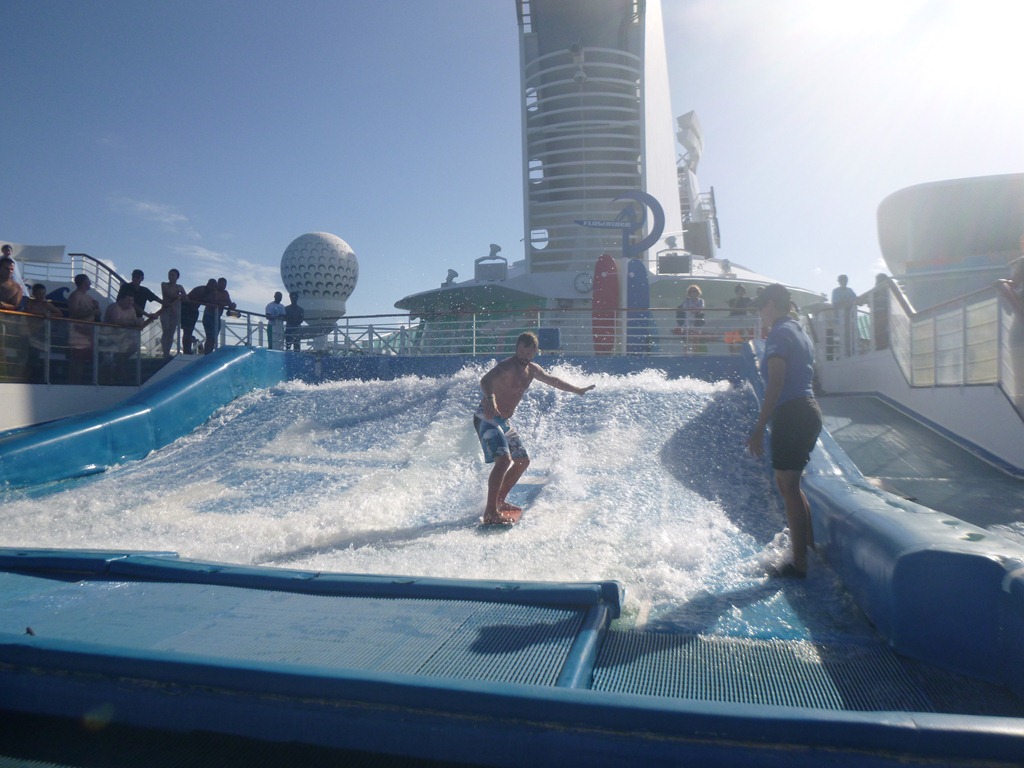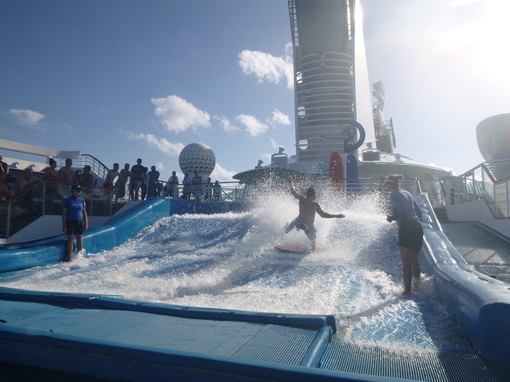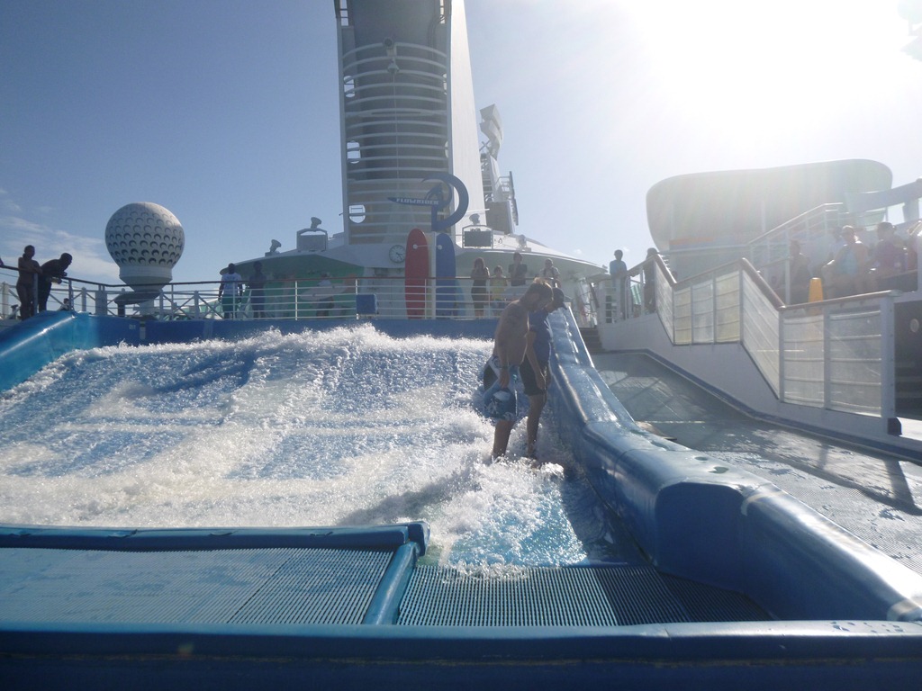 The crashes were the best part. The Flowrider is only open for a few hours at a time. I didn’t have enough time to run to the room and change before they closed. I was not about to try it in just my swimsuit. Having my bottoms ripped off in front of everyone did not sound appealing! No matter how much fun it looked.