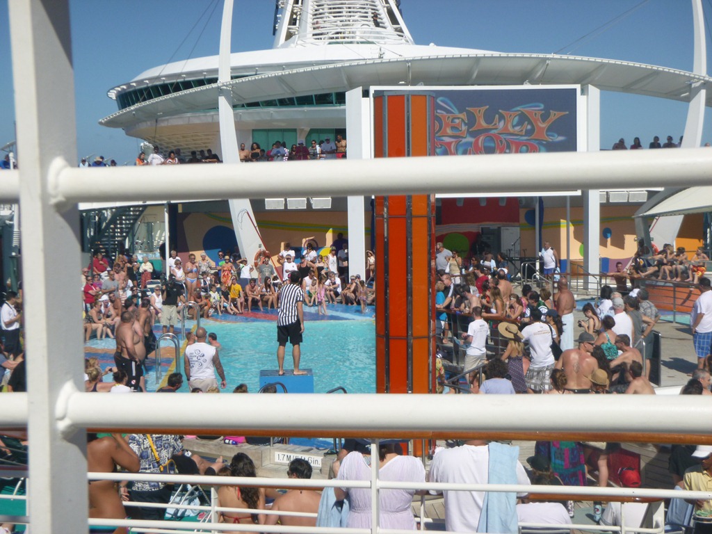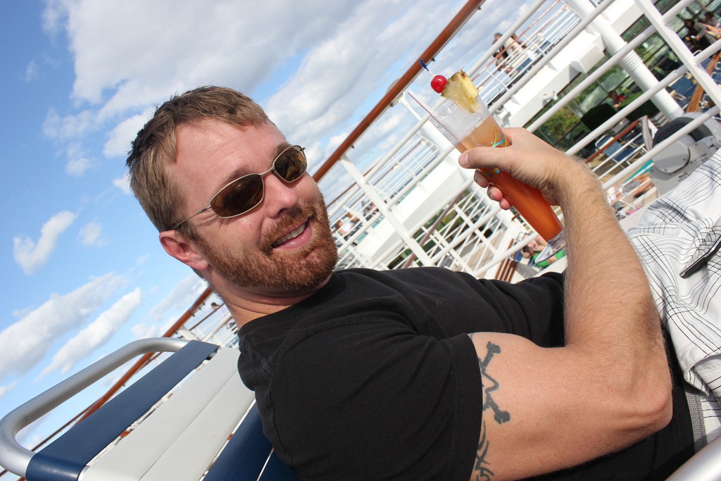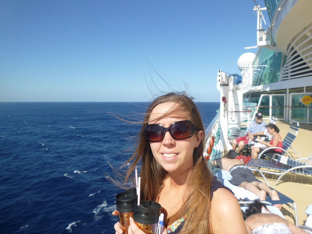 Our cruise started Saturday. We boarded our ship, Liberty of the Sea, in Fort Lauderdale.  We spent most of our day laying in lounge chairs, drinking fruity drinks, and watching college football.