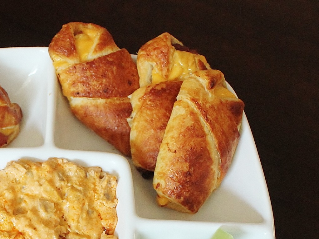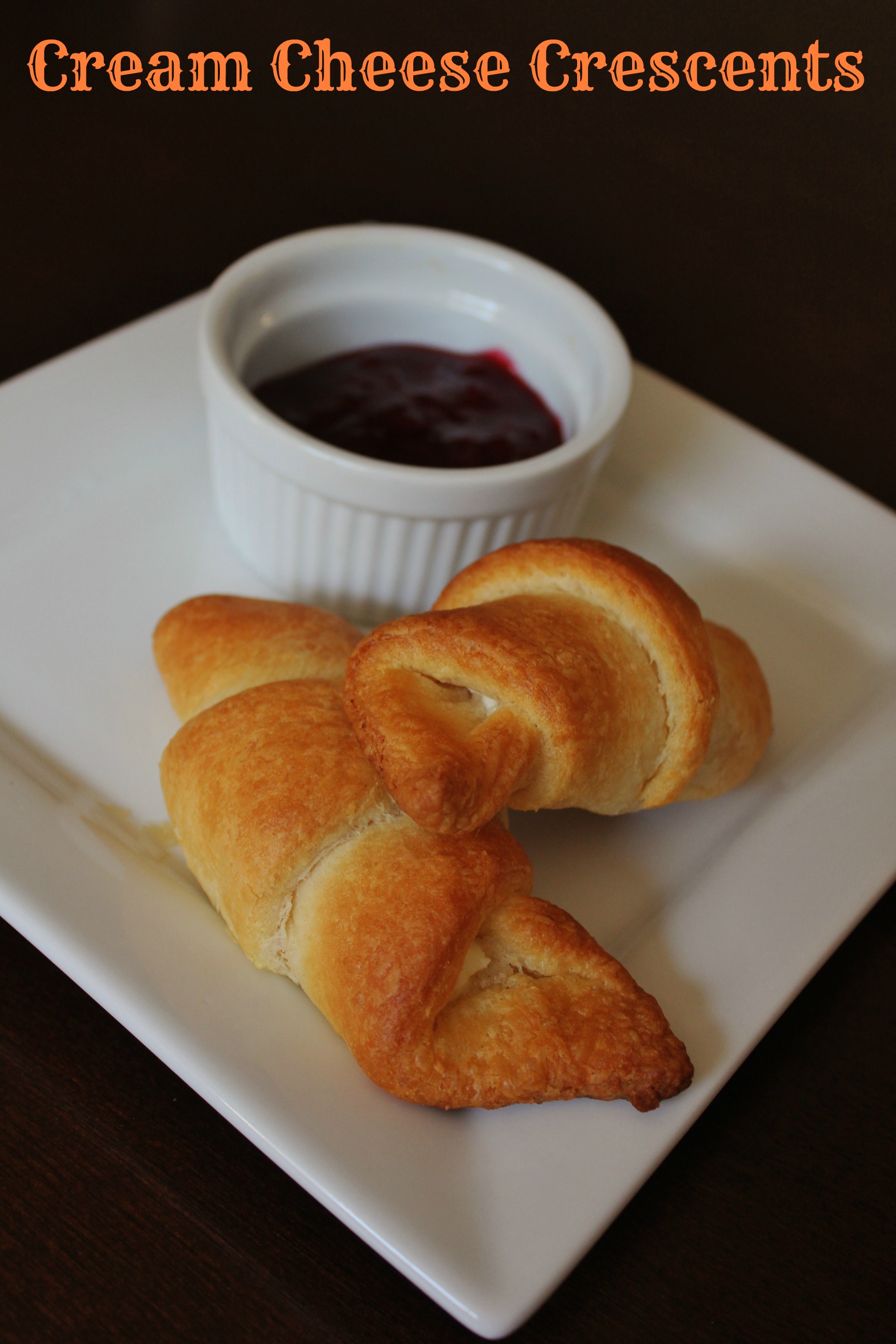 Preheat oven to 350 degrees. Spoon 1/2 Tbsp Cream Cheese onto large end of crescents. Roll up crescents starting at larger end. Bake for 12-15 minutes. Serve warm with dipping sauce.