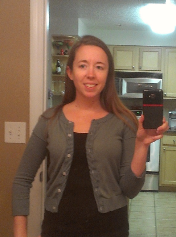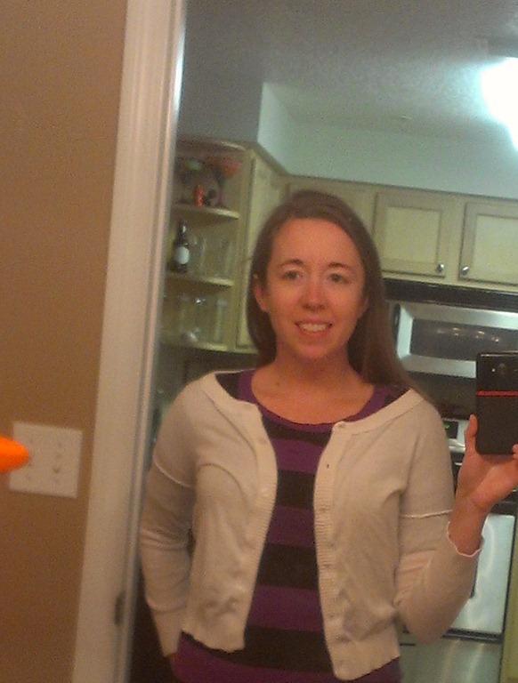 This picture doesn’t look great, but the sweater came out perfect. I now have a “new” sweater for $1.20. (As I was taking this picture, I remember, I already have a green sweater. Sad smile Oh well!)