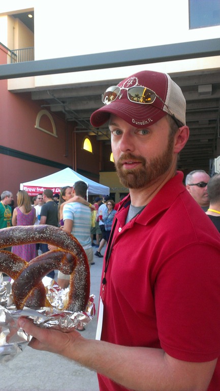 The festival started at 1PM, but I left around 11:30 to go downtown. I packed a sandwich for later, but bought a hotdog for us instead. Das Dogs in Downtown Abacoa has good hotdogs and now a really good selection of beer. Huck later ordered a Pretzel. If that’s what you want to call it. He was determined to not become Drunk Huck again. He made sure to eat and drink lots of water.