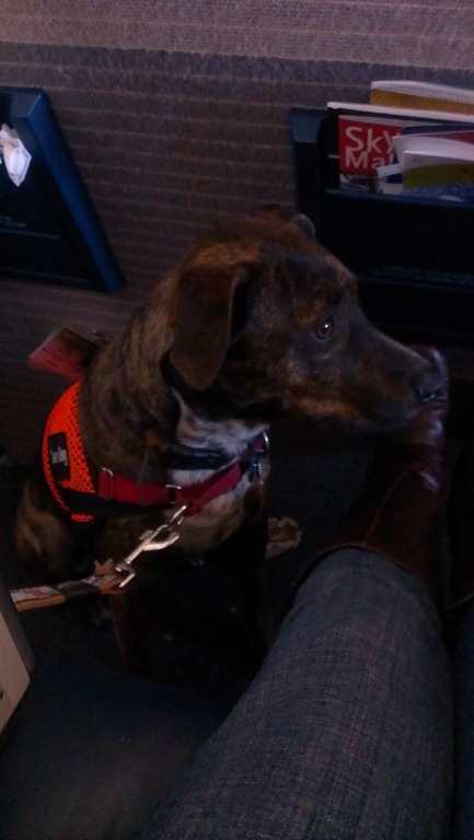 My seatmate was super cute, too! He spent most of our flight sleeping on my feet.
