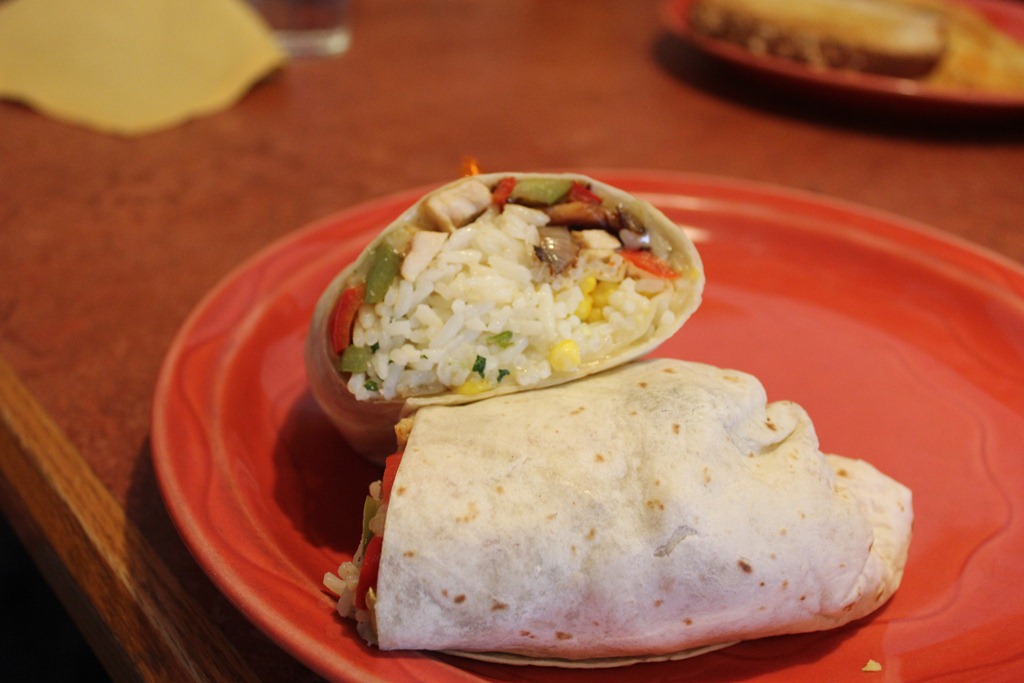 Huck, of course, skipped breakfast and went straight for lunch with the Santa Fe Chicken Wrap and salad.
