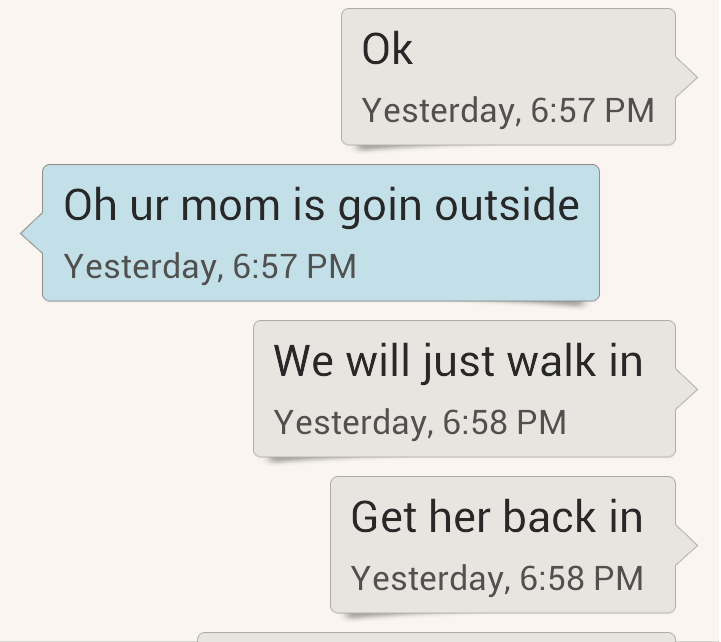 I’m sure when my mom walked outside, Michael had his phone out of so fast. He told her he was hungry and to come back inside!
