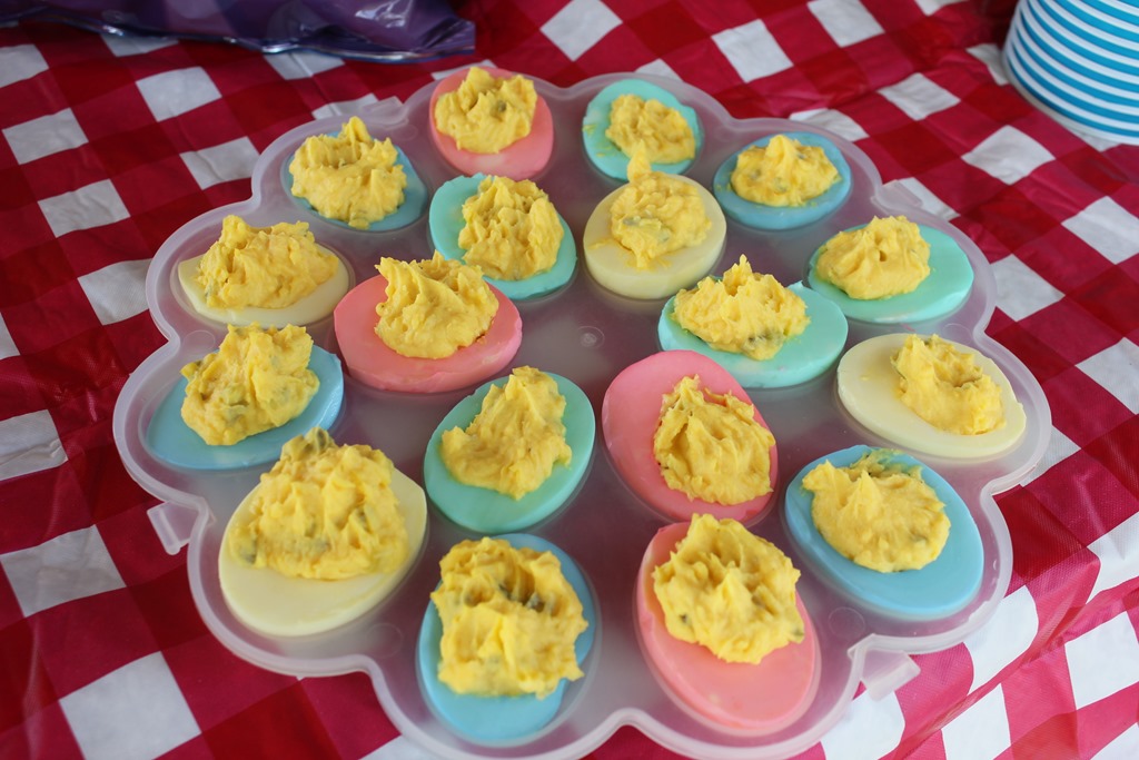 I made Easter Egg Deviled Eggs and Carrot Cake Pops with Beer to take with us.