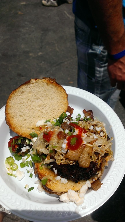 I did try a couple of burgers that were really good. Mrs. Smokey’s BBQ had the best food with their Pulled Brisket on a Fried Biscuit, and Hurricane Grill had the best burger {pictured above}