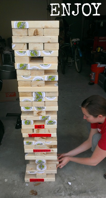Huck, the contractor, starting thinking about how easy a game like this would be to make. A few days later, he bought the supplies and 30 minutes later, we had a Life Size Jenga.