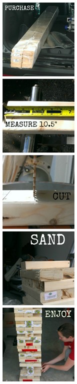 The 4th of July is a week away. Are you ready? Our friend Gump is coming into town, but I’m not sure what we are going to do yet. Maybe we can grill out here, play some Jenga, then head to Downtown Abacoa. As I was thinking about playing Jenga, I remembered, I never shared how to make it with you guys.