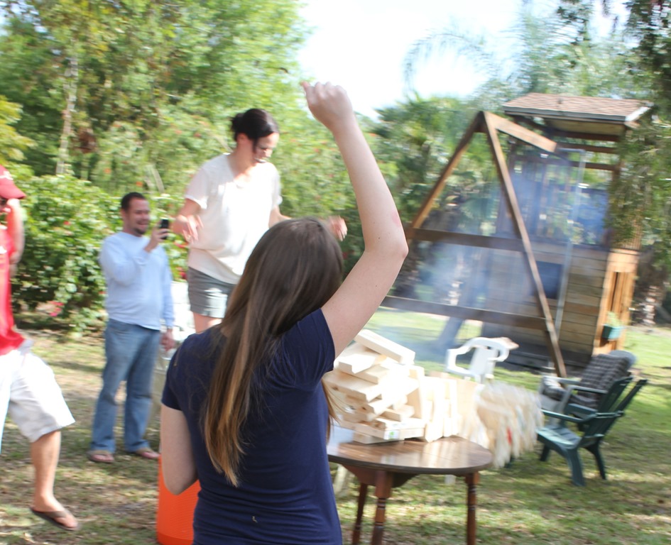 The idea for Life Size Jenga came from a night of drinking at a bar… Surprised? We were at Das Biergarten one night with some friends. They had Jenga setup outside and we started playing.