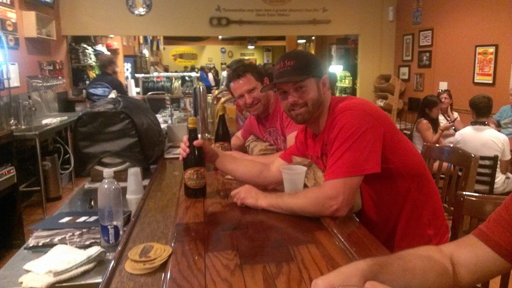 Cigar City releases a beer every year called Hunahpu. It’s a big deal. People wait in line for hours to get it. Well this year, they aged some of the Hunahpu in Brandy Barrels. The only way you can get this Hunahpu is with a voucher. I’ve seen it referred to as “The Golden Ticket” for adults. Huck and Greg were lucky enough to win a voucher. Each voucher is for two beers. {Cigar City has a list of everyone that won a voucher. You have to show your ID and voucher to pick up the beer. Again, it’s a big deal}