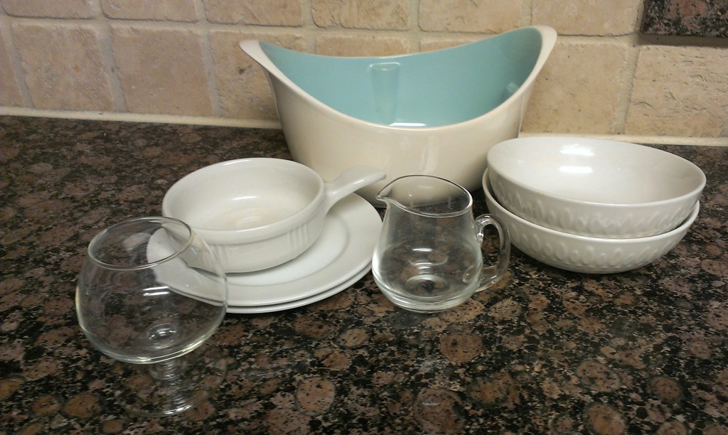 I’ve been using large plates for my pictures which can be a challenge. I found a couple of small plates and bowls, a serving bowl, and two cut glasses. I got all of these for less than $7! Money well spent if you ask me.