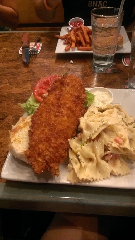 I ordered the world’s largest fish sandwich. It came with the largest serving of pasta, too.