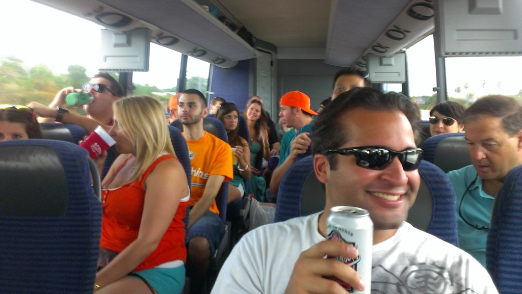 Party buses to football games are popular here. Maybe they’re popular everywhere. Deena and Alex asked if we were interested in going to the Miami vs. Atlanta game a few weeks ago. It was Miami’s first home game.