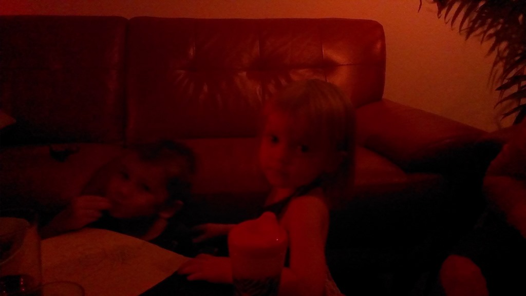 Since Mary and Mackenzie are in town, we checked with Greg to see if it was OK to bring them along. Once we arrived, we decided it was probably a bad idea. She quickly made a new friend, though. And the hostess was great and found us paper and pens for them to use.