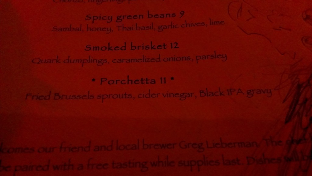 Next up was Greg’s famous Black IPA. It was paired with Porchetta.