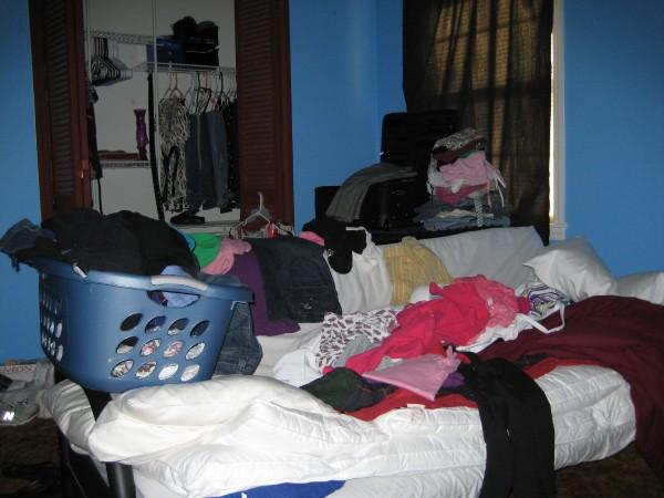 This is what my room looked like as I packed 6 weeks worth of clothes into one suitcase. The same size suitcase I’m taking to Georgia… Craziness! I guess when you can pack more, you will.