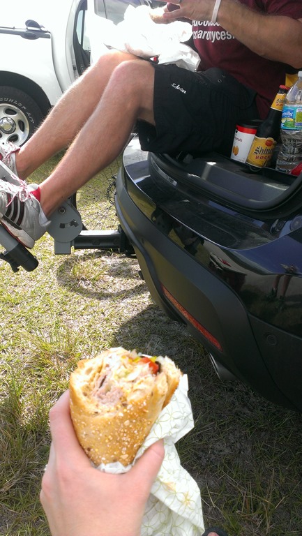 We made great time on the way back {a pain in your butt will do that}. Once we arrived at the car, we enjoyed our Publix subs and “Crack” {Karl brought some Salt and Pepper chips and we devoured, almost, the whole bag}.