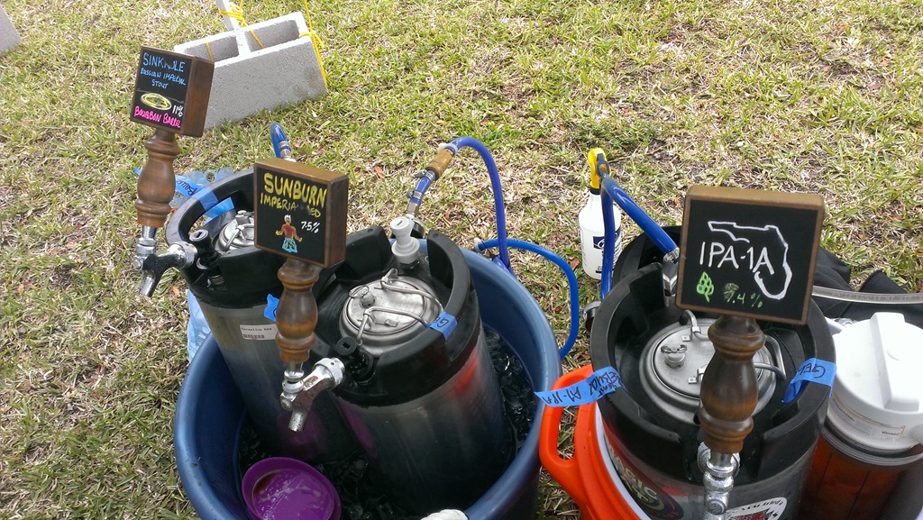 This weekend we attended the Ales for Anglers. It was a beer and music festival in Boca Raton. Huck and Karl were entered into the homebrew competition. They spent many weeks brewing the required 20 gallons of beer for the event. Well, they actually brewed 40 gallons of beer. Four 10 gallon batches. Our house was overflowing with beer the days leading up to the event.