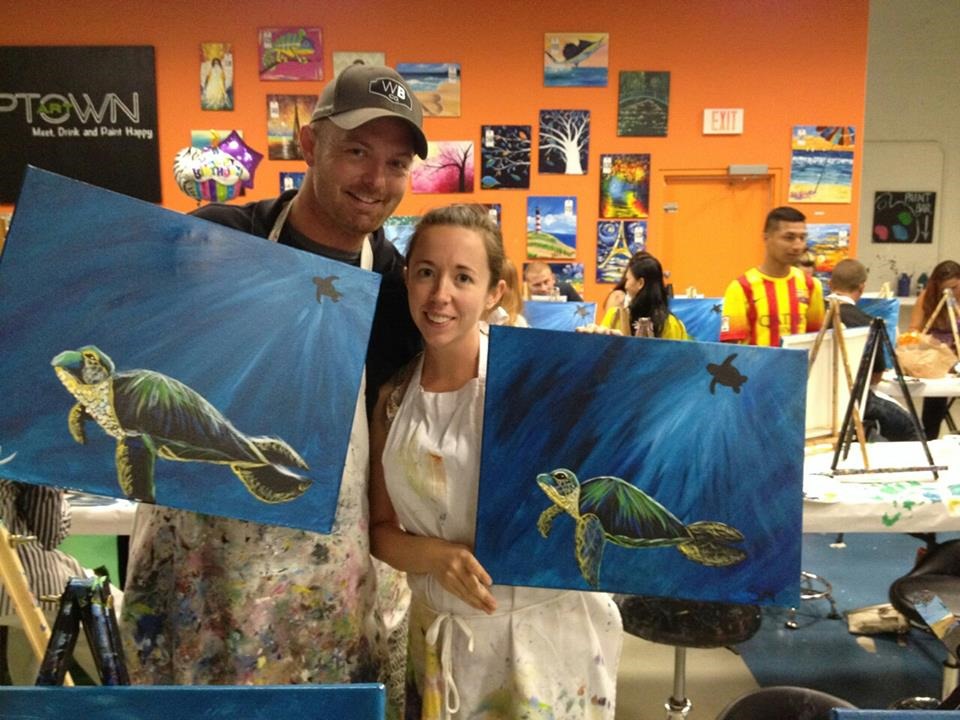 We arrived at Uptown Art with a bunch of beer, ready to paint turtles.