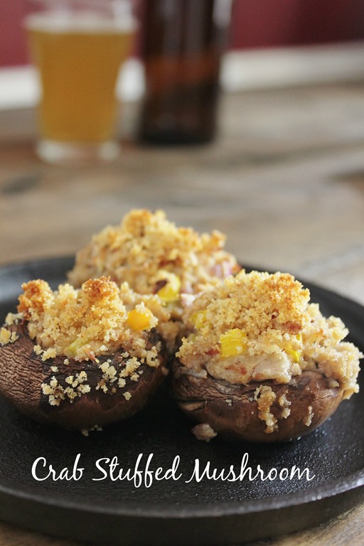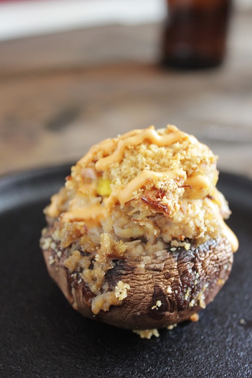 I had some crab mixture leftover and made two crab cakes with a Citrus Wheat Sriracha Sauce. The sauce was so good, we started drizzling it over the mushrooms. That recipe will have to wait for another time, though.
