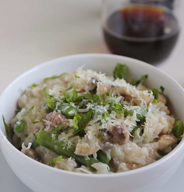 Brooklyn Brown Ale Veggie Risotto with Mushrooms, Peas, and Green Beans.
