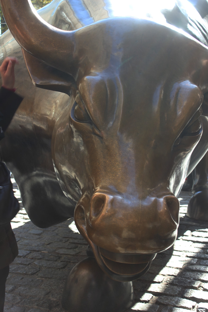 Once the boat dropped us off, we headed to the 911 Memorial. On the way, we wondered around Wall Street, and tried to see the Charging Bull. It was surround by people taking pictures touching his man parts. We kept going.