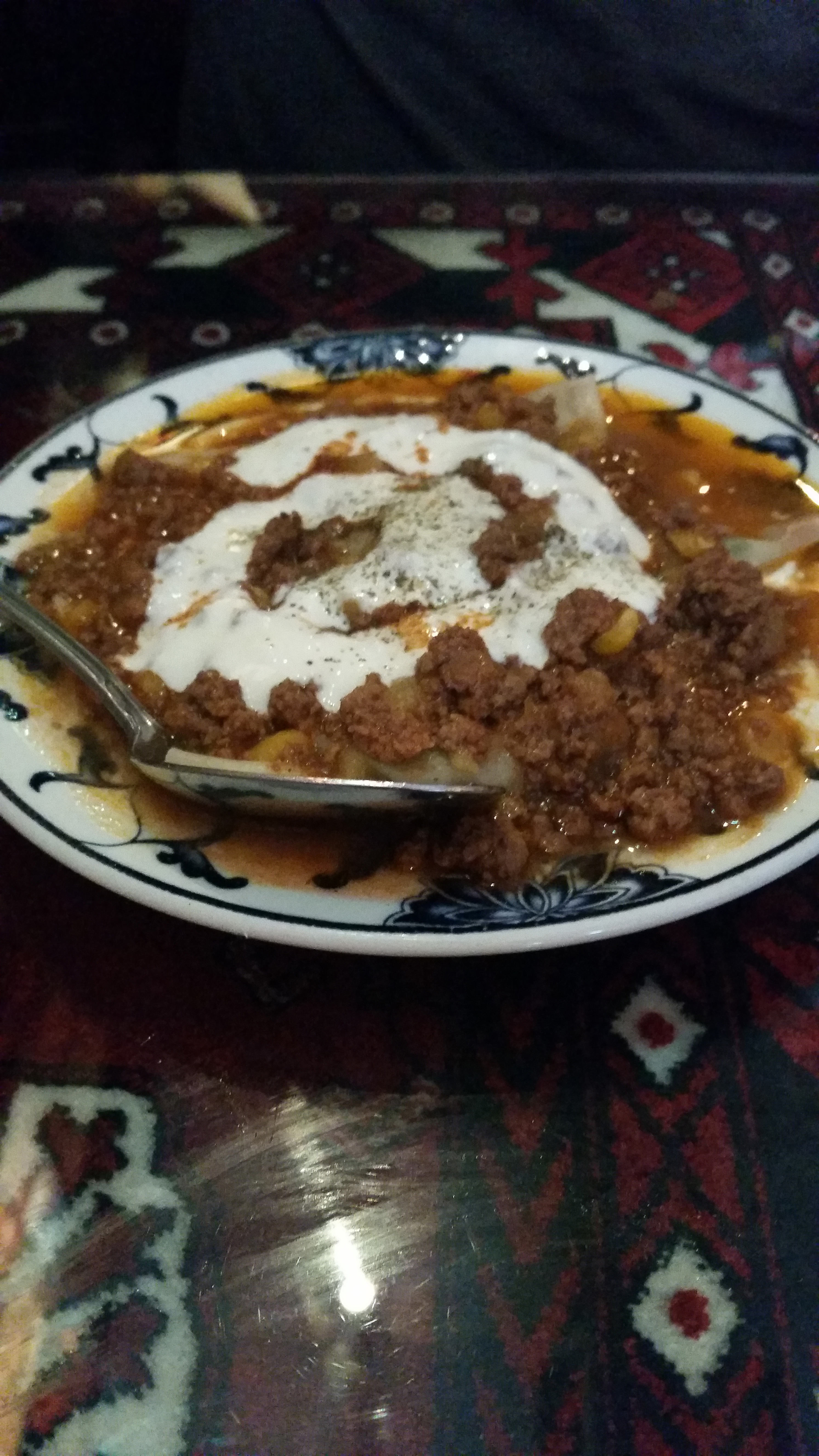 Ariana was super small but kind of cozy, and the waiter was really nice and the food was good. I’m sure he thought we were crazy when we ordered 3 appetizers {Yes 3! But they were small}: Aushak, Spinach Samusa, and Bolanee Kachalou, and one plate of Beef, Chicken, and Lamb Kebab. The Aushak was our favorite. I actually bought ingredients to make it this week.