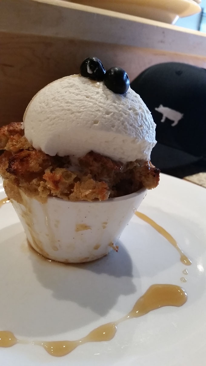 June 25th- Another amazing meal at Coolinary. Huck went to the bathroom when the waitress came back to ask if we would like dessert. Apple Bread Pudding?! How could you say no?